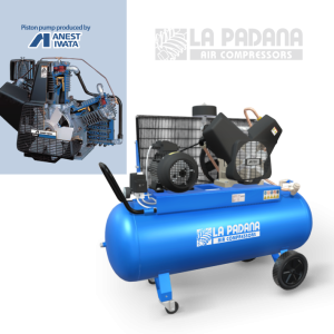 Compresor Oil Free de piston, con tanque.Unidad de bombeo fabricada por ANEST IWATA